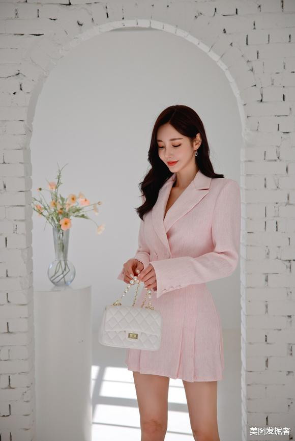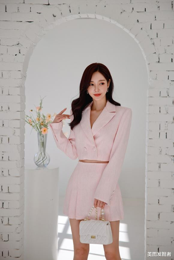 孙允珠迷人穿搭: 伯尔尼童话粉雪气泡西装套裙